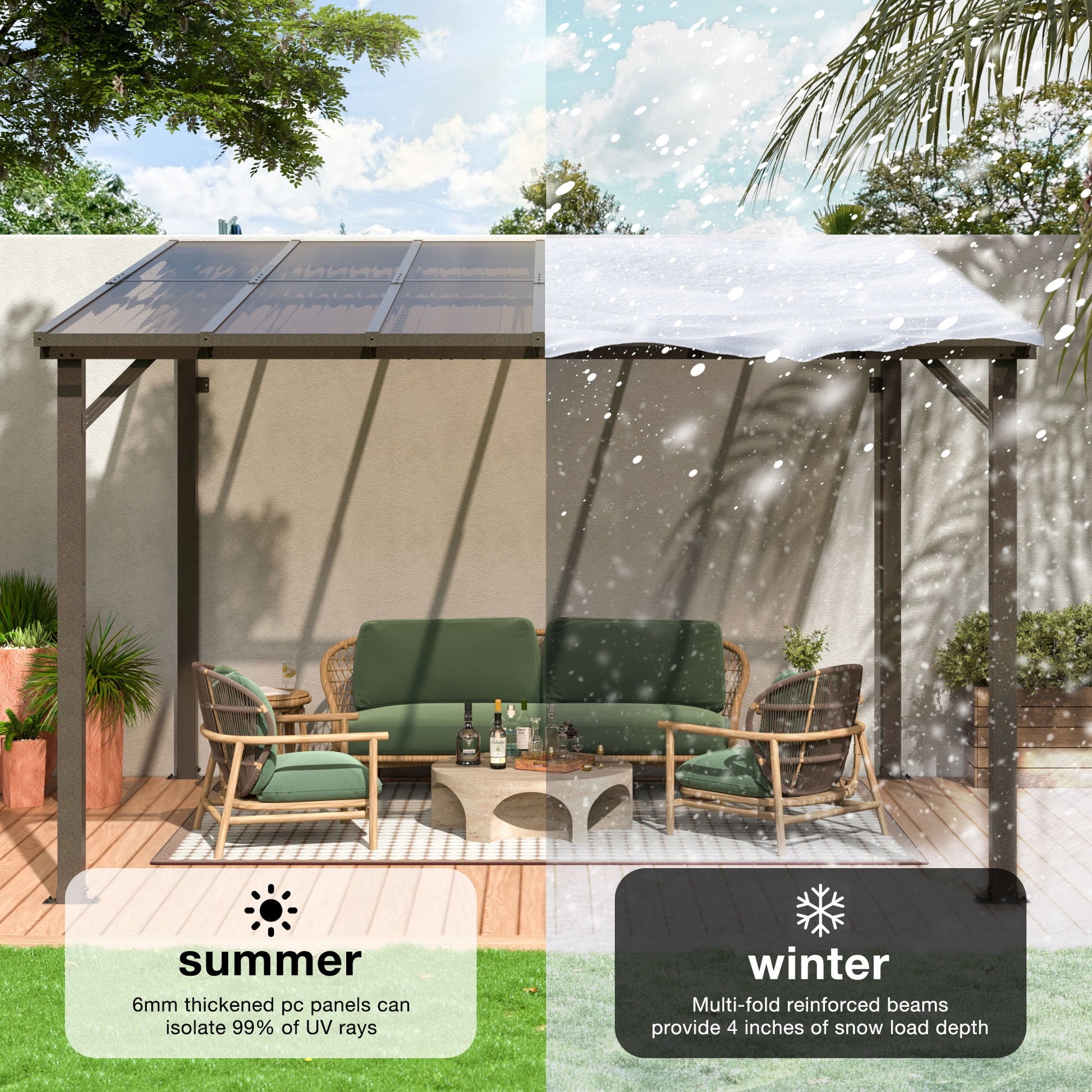 AirWire 10' x 12' Gazebo, Outdoor Wall Mounted Gazebo & Pergola with Aluminum Frame, Lean to Gazebo Awnings for Patio, Decks, Porch and Backyard